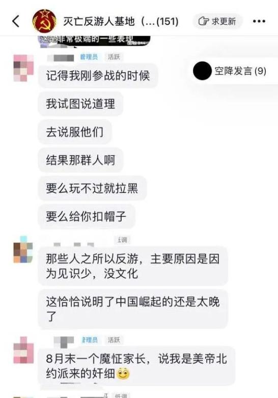这些年轻人大多来自有组织的“护游联盟”。其中对家长们威胁最大的,是一个叫“灭亡反游人基地”的群组,150多名群成员都是8—16岁的学生。