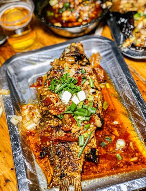 大大小小的烧烤店都有自己家的特色,他们家烤鳗鱼是一绝,配辣椒大蒜更是食客们的标配,东北烧烤就得这么吃才香。