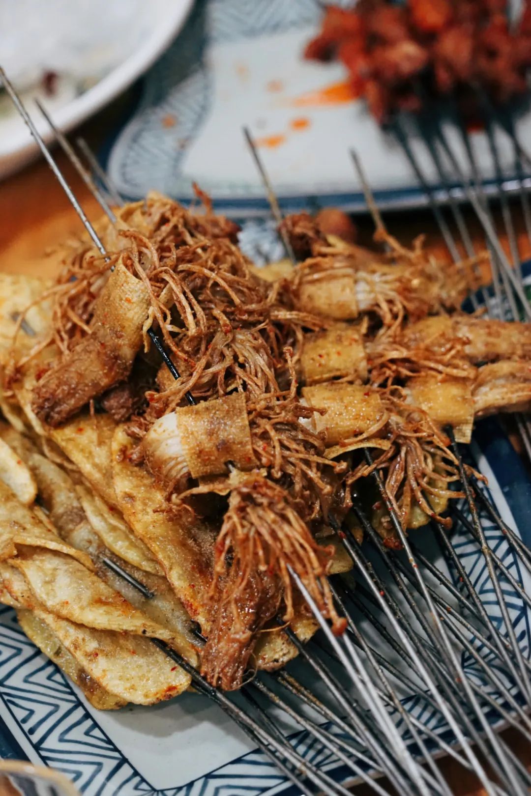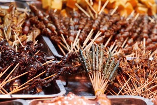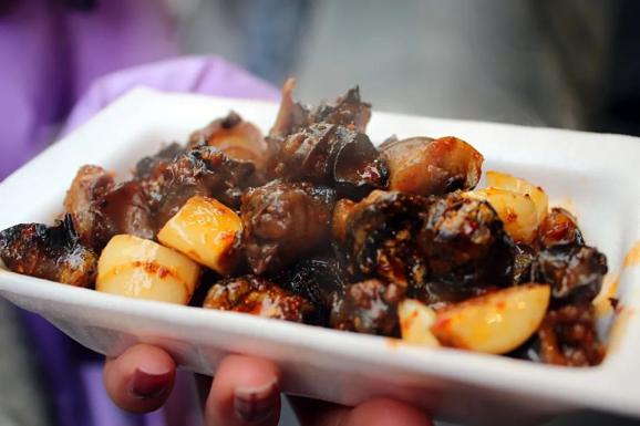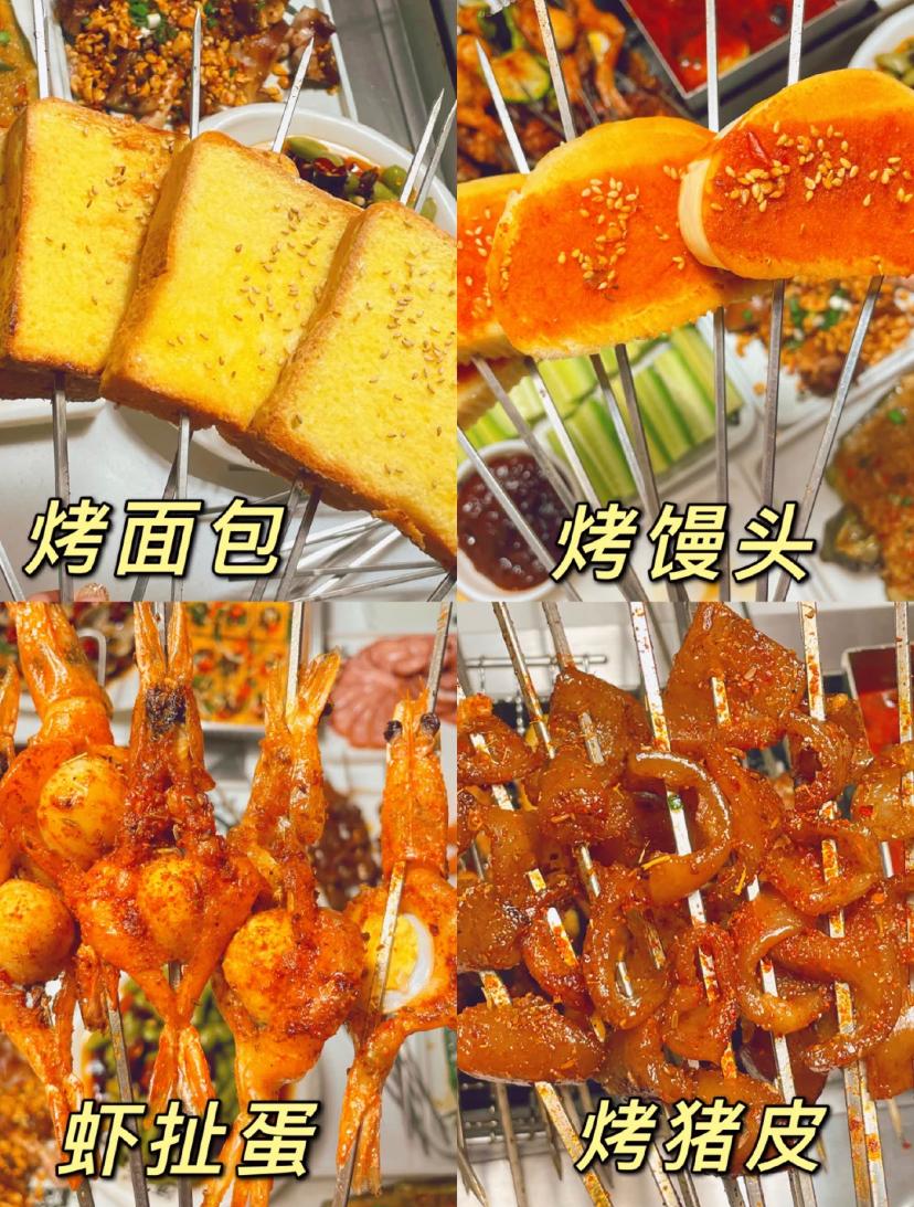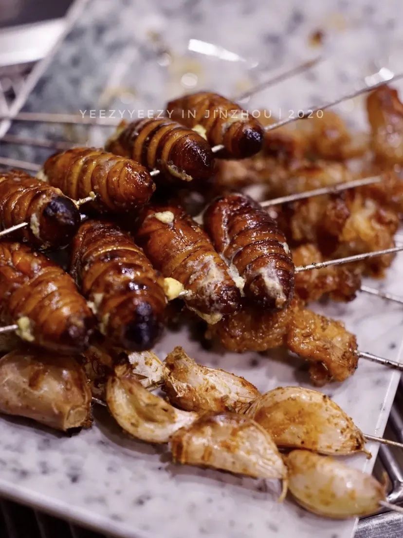 烤饺子、烤米饭在这里已经是司空见惯,烤螃蟹、烤羊眼睛、烤鸡头、烤蚂蚱....才让人大跌眼镜,望而却步,一个字,绝!