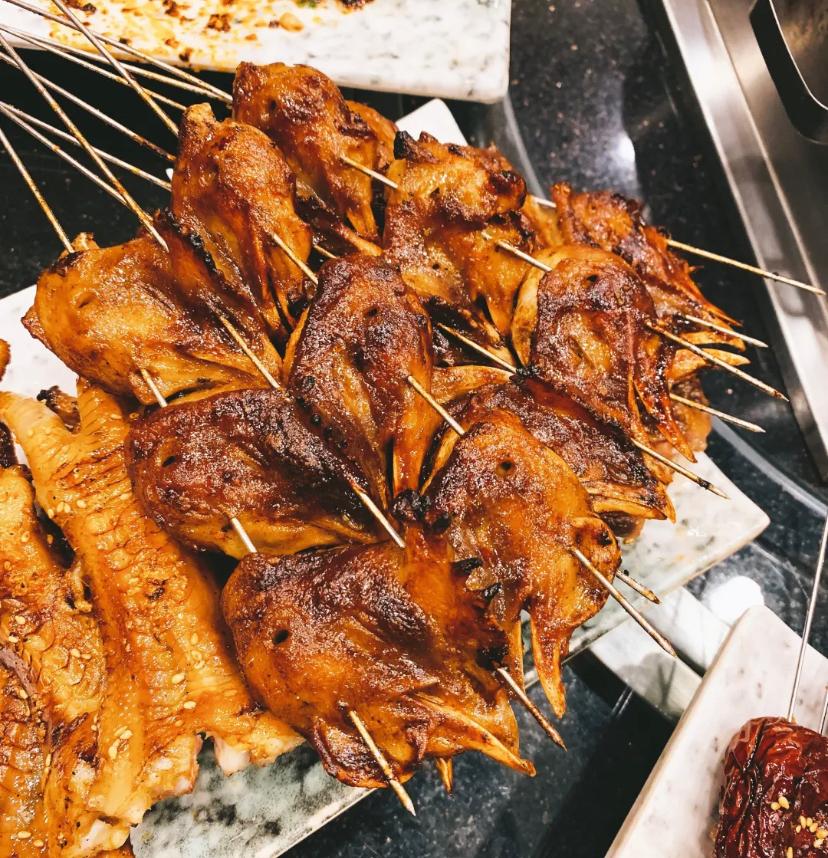 烤凤爪享受的是啃,那烤鸡头绝对是连啃带撕,用高温逼出食材的原汁原味,厚实饱满的口感,轻轻一咬,骨头就分离开来,老香了!
