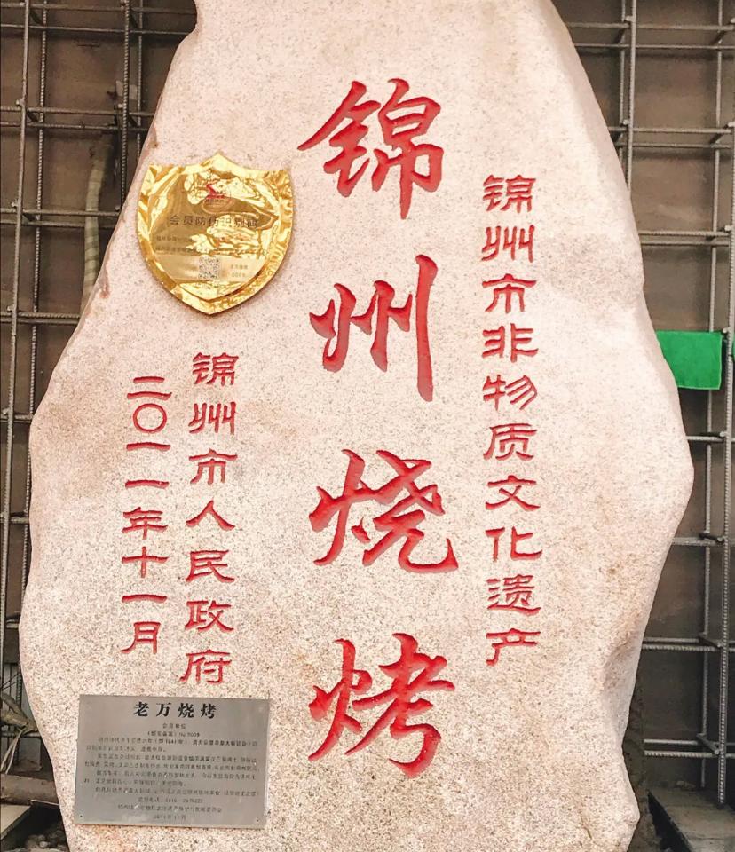 在锦州,除了将烧烤纳入了非物质文化遗产之外,像锦州有12家名店烧烤门口都有这块文化石,这是锦州最有权重的锦州烧烤协会颁发的,绝对不会错!