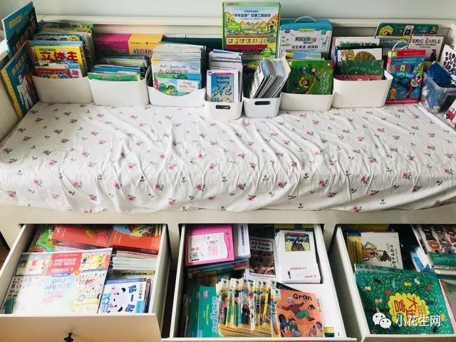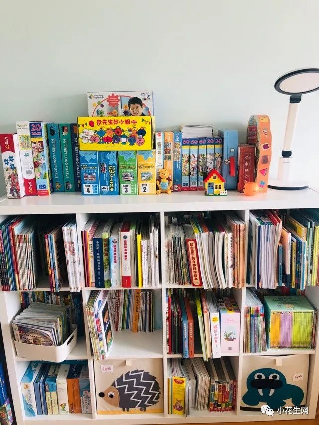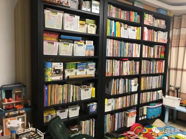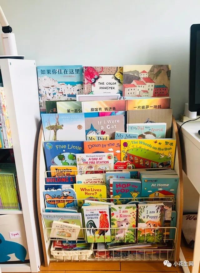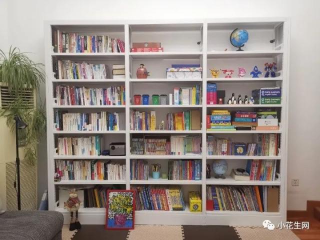 对于低龄娃,必须开放式!我家里两面书架墙,客厅一面,用来放英文读物,按照教辅,工具书,分级,绘本,桥梁,章节,科普...分类摆放;