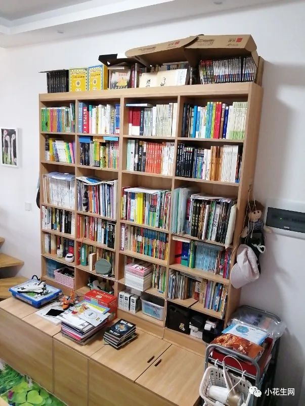 我家一开始装修时,做了一整面墙的封闭式书柜,结果这才两年,就塞满了……照片是之前拍的,现在书柜间的空隙里塞的惨不忍睹!然后就开始发展对面空间,买了宜家的收纳柜,装玩具。但是没地方放书啊,于是我上网买了简易五格架,组合在一起居然也放了很多!现在已经看不到墙面了,全是书。