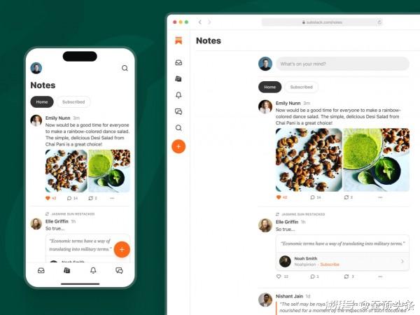 面对各位新对手,近期最令马斯克动容的似乎是Substack,他们本周刚刚推出名为“Notes”的新功能。Notes会向用户展示已关注者发布的文本提要和链接,还有算法猜测大家可能感兴趣的其他内容。这功能跟Twitter还是很像,毕竟不是人人都愿意主动发帖子供他人阅读。
