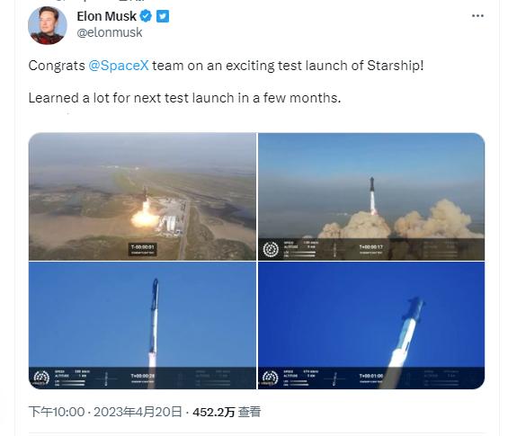 爆炸后,Space创始人马斯克在推特发文表示:“祝贺SpaceX团队进行了一次令人兴奋的‘星舰’测试,为几个月后的下次测试发射吸取到了很多东西。”