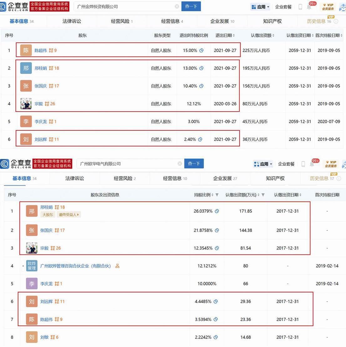 首先是华雷金属股东陈超伟,其合作伙伴绝大部分与芬尼科技股东有关,其中部分合作企业已在IPO前注销,如广州金烨投资有限公司(2021年12月注销)、广州欧华电气有限公司(2020年注销)(见图一),两企业股东或历史股东中均涉及陈超伟、张利前妻邢桂娟、宗毅、芬尼科技监事刘远辉,其中,广州金烨投资有限公司注销前,张利担任执行董事兼总经理、法定代表人。