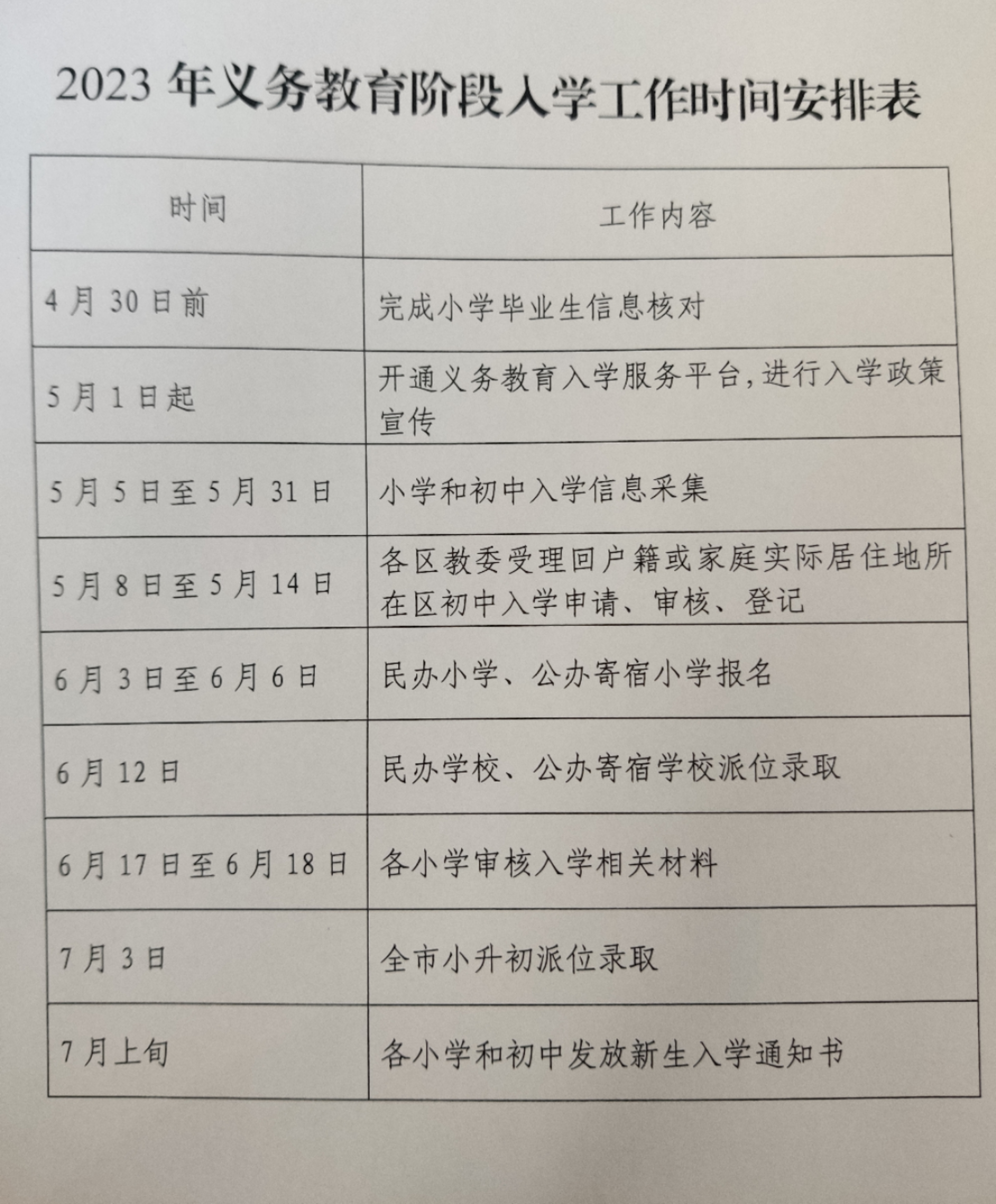 附:2023年北京义务教育阶段入学工作时间安排表