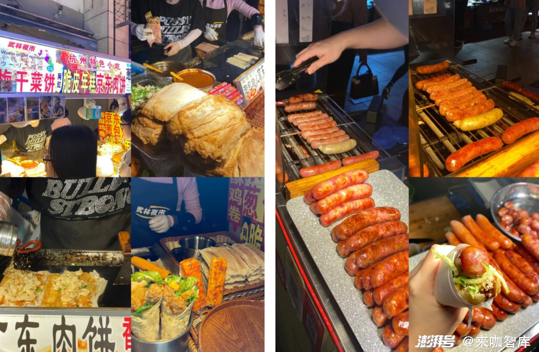 以包子类产品为例。如果想要在武林夜市上售卖地道的小笼包,不仅对占地面积、火水电有着较高要求,并且在客流量如此大的情况下,为了尽可能地多售卖,必须雇佣更多的员工现场手工包制。租金+食材+人工+水电等成本下来,基本上摊主赚钱无望。而如果选择网红拇指生煎包,虽然不是啥地道的杭州美食,但凭借着巨大的人流量,也会有不少人购买,加上较低的成本以及搭售其他产品,不仅比卖小笼包轻松而且赚钱。在如此大的反差面前,摊主自然会用脚投票。