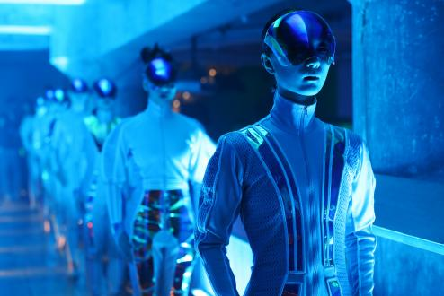 作品由秩序、操控、狂欢三个板块组成,呈现出在虚拟与现实中流转的人类:看似具有真实意识,实则永远处于代码的循环运算中。演出借助人体动态、环境空间的改变与沉浸式观演方式创新手段,启发观众思考工业、科技、信息等越来越多的“人工制造”与人类本体之间的关系,探讨个体存在与当下“社会景观”之间那种永无休止的互需,而又矛盾的循环处境。