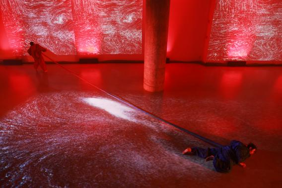 《莫比乌斯环》是由北京师范大学艺术与传媒学院与法国里昂国立高等音乐舞蹈学院联合制作的实验剧场作品。这两所拥有深厚底蕴的高等学府基于共创新型艺术教育模式的蓝图,从课程、研讨会、工作坊以及艺术创作等多方面进行深度探讨,经由两年的精心打磨,最终为观众奉上了这一场反思当代人类生存困境的反思之作。