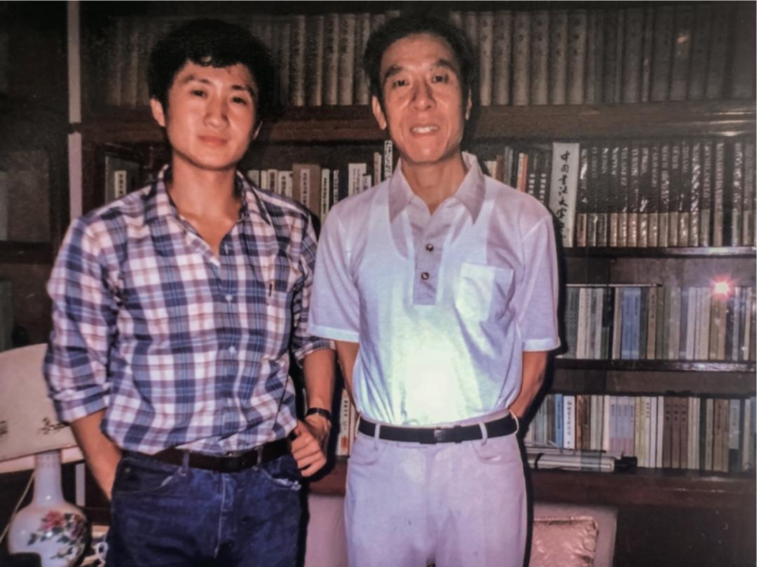 与袁行霈先生的合影(1984 年)我记得同一册《阅读与欣赏》中还收了吴小如先生的一篇鉴赏文章。而那时我刚读过王瑶先生写的《李白》,对唐诗也发生了浓厚的兴趣。尤其是书中写到李白青年时代在青城山隐居,读书习剑,“养奇禽千计,呼皆就掌取食,了无惊猜”(李白《上安州裴长史书》),又描述李白如何在二十五岁,只身出蜀,顺长江而下,“仗剑去国,辞亲远游。南穷苍梧,东涉溟海”,都令我不胜神往。“曾梦想仗剑走天涯”——那句歌词写的就是当年的我。仗剑不过是一个姿态,但远走高飞却梦想成真了。1978年10月我远赴北京大学,这才知道自己有多幸运,原来这三位先生当时都在中文系任教。
