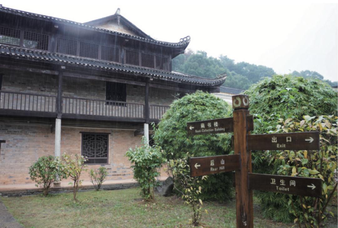 藏书楼不在正宅部分十余年前,我第一次寻访书楼的过程中,曾经到过富厚堂,当时从长沙乘中巴到达荷叶镇,走了4个小时,如今高速路虽然通车,我却并没有快上多少,因为遇着大雨天气,走了将近3个小时才到。今日的富厚堂已经变成了旅游景点,门票60元,这是上次来没有的,售票小姐称,门票里包含着另一个景点——曾国藩的出生地,无论你去不去,反正钱是不退的。景区门口围着一圈儿小摊档售卖旅游纪念品,这也是上次来访时没有的。因为大雨的缘故,加上并非假期,整个景区显得空荡荡,看着这些敬业的小摊主们冒着大雨,守在一个游客都没有的景区门前,撑着大伞坚持营业,感觉既怪异又敬佩,生之艰难,无处不见。