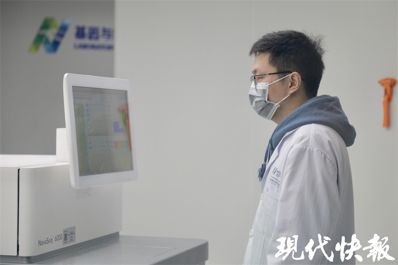 在基因与细胞实验室中,穿着白大褂的工作人员正在各种仪器前操作着。阚苏立介绍,长三角地区的众多生物样本送到这里后,由这些工作人员对样本进行提取、建库及前期处理。“现在我们看到的这些工作人员,正在将生物芯片在高通量基因测序上进行测序,处理后的数据就会上传到我们大数据中心,再由生物信息团队对数据进行分析,最终帮助企业来获得相关的数据报告。”阚苏立说。