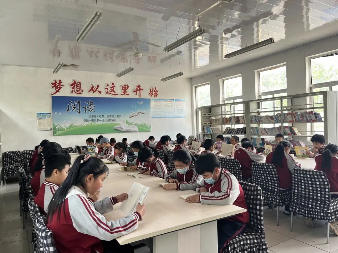 ▲高密市豪迈学校开放阅览室,组织学生定期去阅览室读书,为学生阅读提供充足的资源,创设“阅读·启智”的文化氛围。