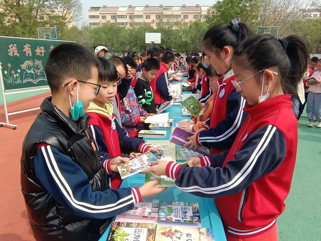 ▲潍坊高新双语学校举办了“童心向党 共沐书香”读书节之图书漂流活动。书香润童年 宝贝爱阅读