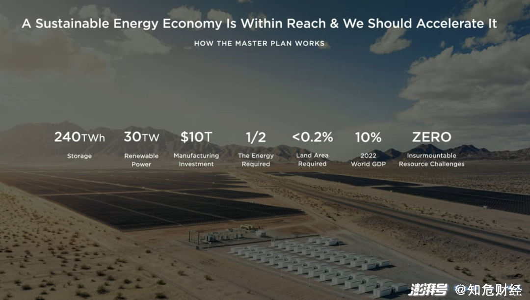 在特斯拉公司的设想里,地球要想实现“ 完全可持续能源 ” ,需要达成下列几个数字: