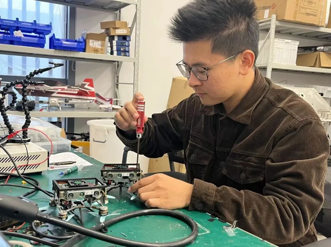 周鑫,浙江大学控制学院博士生,师从高飞、许超老师。研发业内外广为使用的空中机器人单机导航系统EGO-Planner和手掌大小的全自主空中机器人集群,于国际首次穿越植被密集的野外竹林并验证了编队、追踪等多种功能。研究成果总引用340+,h-index=9,GitHub获1.4k+星。周鑫和空中机器人的缘分早早就建立起来了。幼年看过的机器人动画片在小小的他心里埋下了一颗好奇的种子,来到中学时代,又接触了一些关于空中机器人的演讲,演讲者所展示的空中机器人非凡的性能,比如超强的稳定性与灵活性,激发了他对这一领域的热爱,使他明确了未来的奋斗目标;中外空中机器人发展水平的巨大差异,更是让他萌生了在这个领域深耕、科研报国的理想。在本科期间,周鑫就曾自己亲手做过一个航拍飞机。研究生就读后,他坚定选择了空中机器人的研究方向。