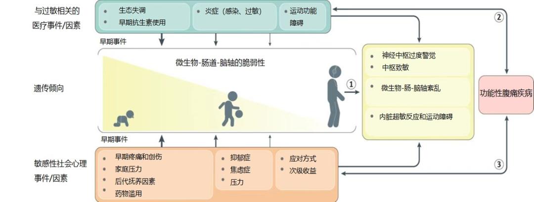 功能性腹痛原因很多。肠道菌群失调、遗传因素、不良事件的刺激等都会引起腹痛。据报道,体内5-羟色胺分泌量增加,引起胃肠道对疼痛的高敏感性。而近年来国内外研究发现,赛庚啶可以阻止5-羟色胺释放 。