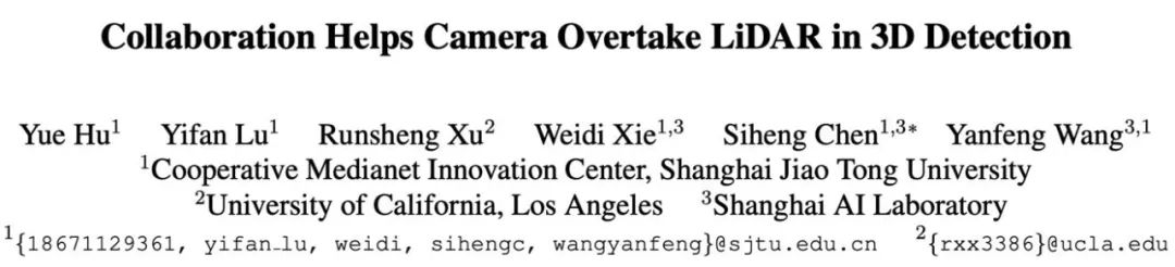 论文标题:Collaboration Helps Camera Overtake LiDAR in 3D Detection