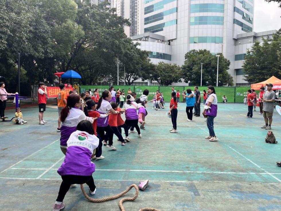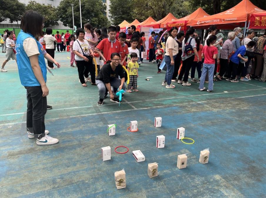 “凝心聚力”拔河比赛当天,除社区运动会外,社区还整合“大党委”资源,邀请人大代表、政协委员、“大党委”成员单位助力,组织工商银行江门分行、江门农商银行、江门广播电视网络、江门广视国际旅行社、广东名优电梯工程等单位,通过“摆摊设点+趣味游戏”的方式为居民群众送上“干货满满”的金融、反诈、禁毒、加装电梯等知识礼包,现场答疑解惑。