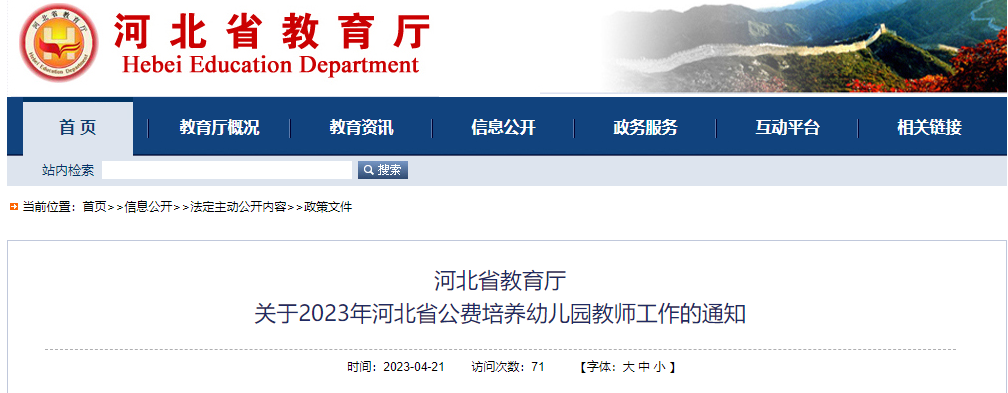 河北省教育厅关于2023年河北省公费培养幼儿园教师工作的通知