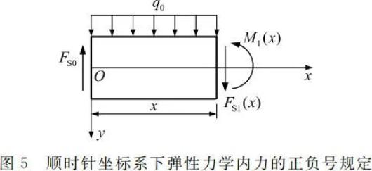 通过对比可知:按照弹性力学与按照材料力学所定义的内力及杆端外力正负号,对于图 1 所示坐标系下的梁弯曲问题,两者完全相同;对于图 2 所示坐标系下的梁弯曲问题,两者关于切应力