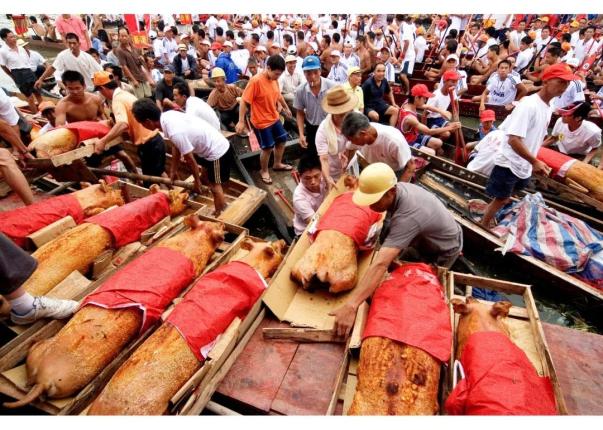 资料图比赛中,起点和终点都搭起彩楼,叫“龙门”。每一场比赛都是两艘龙船的对抗赛。每场赛事发令枪一响,鼓手即击鼓指挥扒丁挥桡前进,这时两岸鞭炮喧天,群情耸动,呐喊助威,扒丁也“嗨!嗨!嗨!”地吼着,竭尽全力奋勇争先,龙舟像箭般向终点龙门冲去,场面紧张热烈。赛事结束,余热未消,各方评论得失,比较短长,相约下届再见高低。