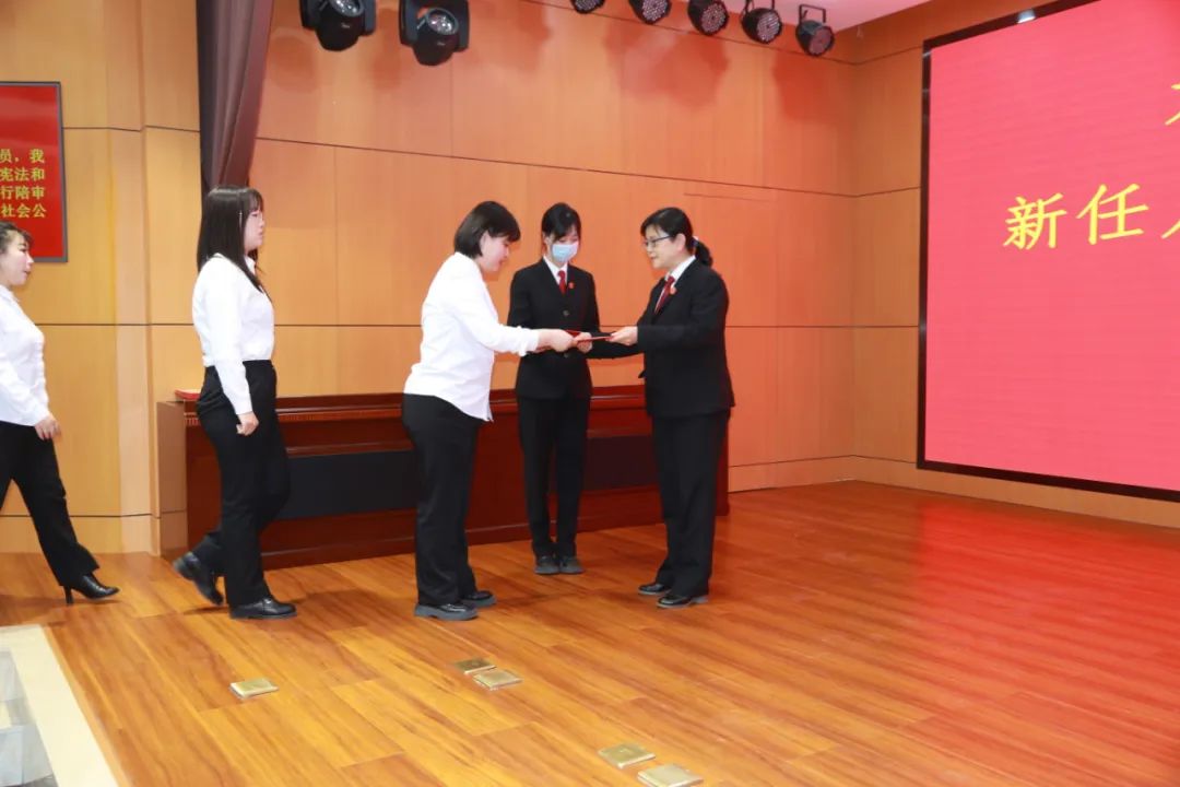 4月24日,元宝法院举办新任人民陪审员任命颁证仪式。元宝法院党组成员、政治部主任朱维宏为20名新任命的人民陪审员集中颁发任命书,就职仪式后进行岗前培训。