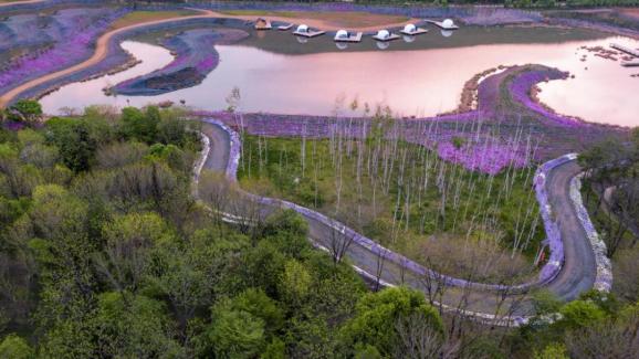 春天到来时,青山国家森林公园内漫山的杜鹃花,壮观的芝樱花海,高贵的芍药花次第盛开。高浓度负氧离子伴着花香围绕身旁,游客们仿佛置身于花的海洋。