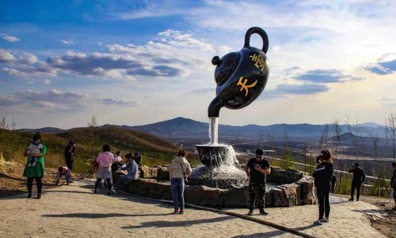 天壶把盏——硕大的茶壶,悬在空中,水从壶嘴中源源不断地流出来,取之不尽,用之不竭。