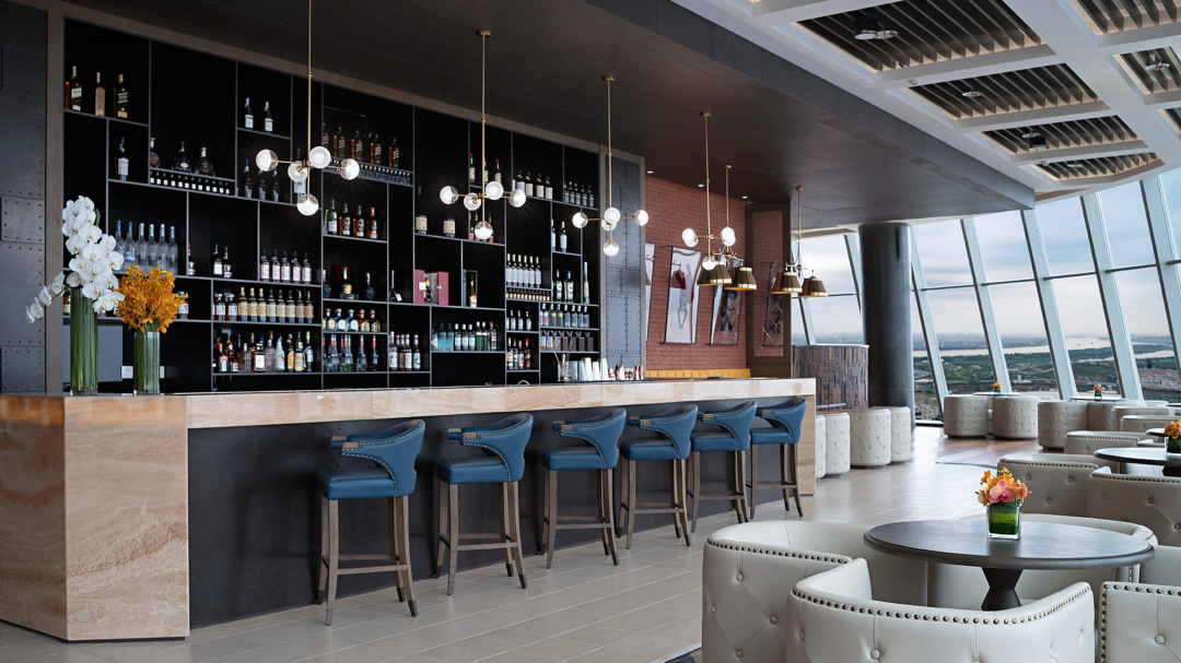 假如回来得尚早,可以去顶层酒吧,伴着舒缓轻柔的乐声,坐在落地窗前,待天幕云霞温柔地映入眼帘。