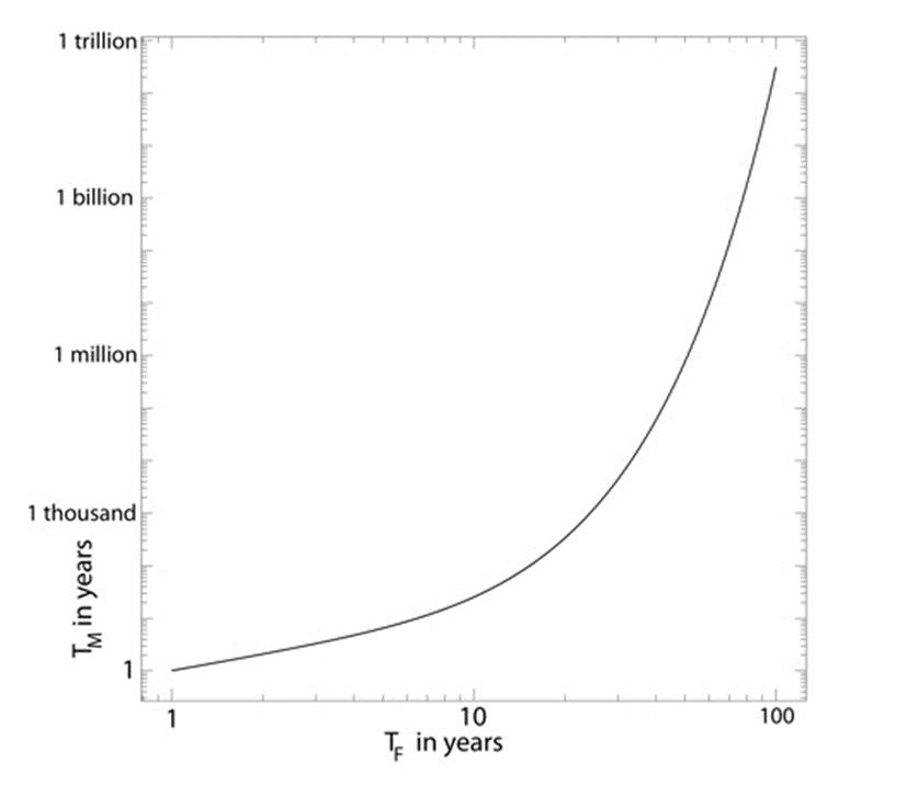 。使用狭义相对论进行一个相当简单的计算(见[7]),根据佛罗伦斯的衰老时间能计算出出梅瑟塞拉衰老时间的表达式:其中c指光速(大约2.998亿米/秒),下图展示了这个关系: