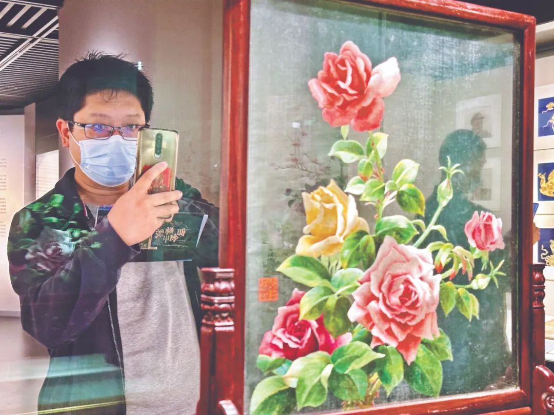 市民打卡深圳博物馆(古代馆)的苏绣艺术文献展。深圳特区报记者 胡蕾 摄“绵延的回响——西南当代艺术的实验跨越”