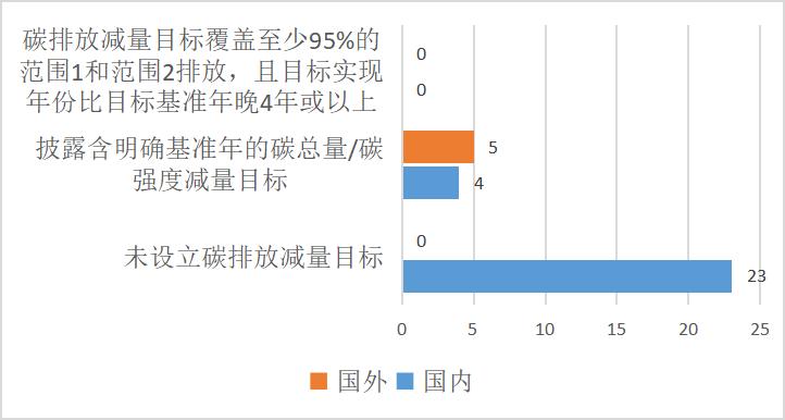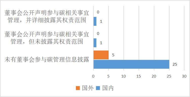 对于董事会参与碳相关事宜管理,电能实业(股票代码:00006)的可持续发展报告中提到董事会公开声明参与碳相关事宜管理,但未披露其权责范围;华润电力(股票代码:00836)的可持续发展报告中提到董事会公开声明参与碳相关事宜管理,并详细披露其权责范围:董事会对华润电力ESG工作承担全面责任,负责监督公司ESG发展方向及策略 ;对与公司业务相关的重要ESG风险进行识别、评估及管理 ;定期听取可持续发展委员会或其他相关管理层的汇报 ;审议及批准本公司可持续发展报告及其他ESG管理政策。其设定覆盖温室气体排放、污染物排放、资源消耗等关键ESG目标,董事会将定期检讨相关目标的达成进度。其余24家企业的可持续发展报告并未披露相关信息。国外并没有企业的可持续发展报告披露此相关信息。