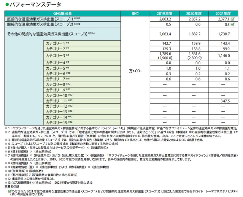 在国外,5家企业的可持续发展报告都披露了范围3各实质性类别的排放数据,并对数据口径等信息进行说明,以关西电力为例,如下图所示: