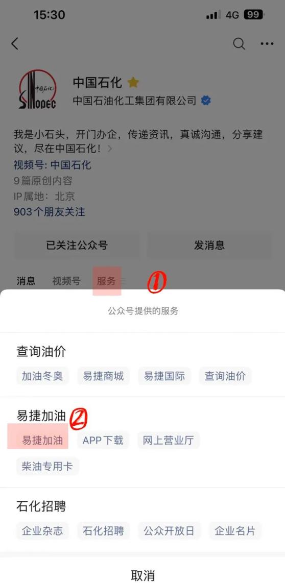 点击“易捷加油”