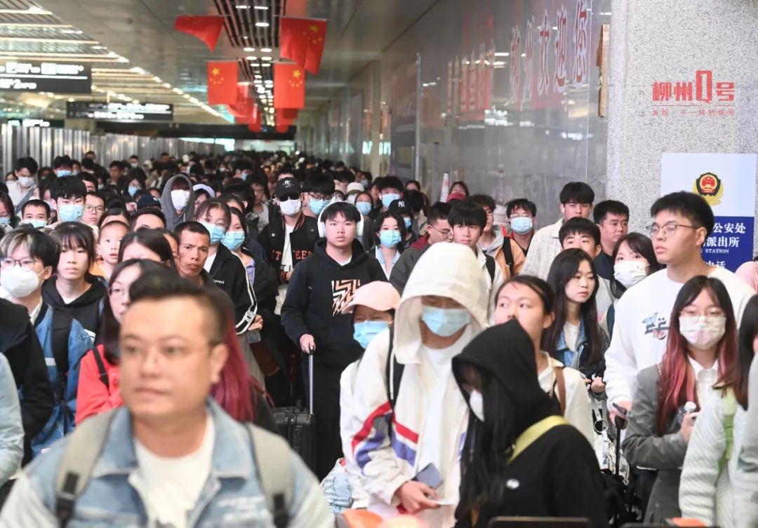 柳州火车站人流如织