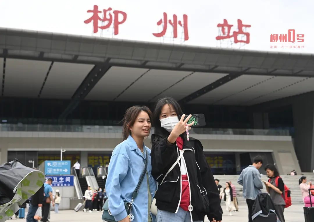 “柳州站”三个字成为游客打卡柳州的第一站