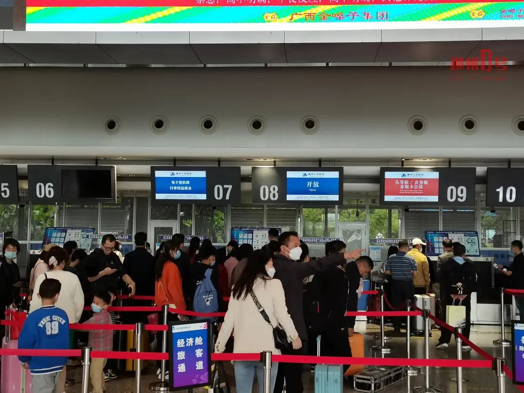 柳州机场也排起长队