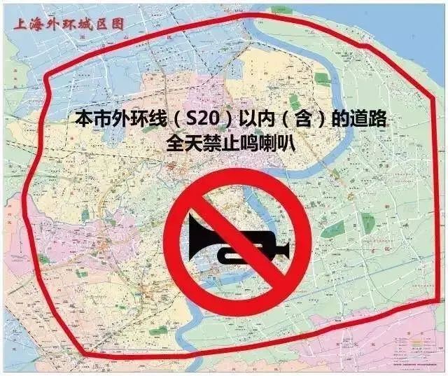 《中华人民共和国道路交通安全法实施条例》第六十二条第八款规定:驾驶机动车不得在禁止鸣喇叭的区域或者路段鸣喇叭。《上海市道路交通管理条例》第三十九条规定:本市外环线以内以及公安机关规定的其他区域为机动车禁鸣喇叭区域。