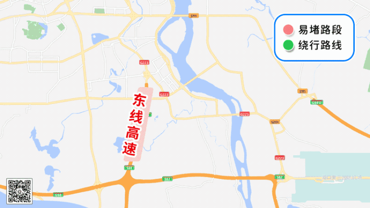 三、东线高速海口管段(一)可绕行223国道。