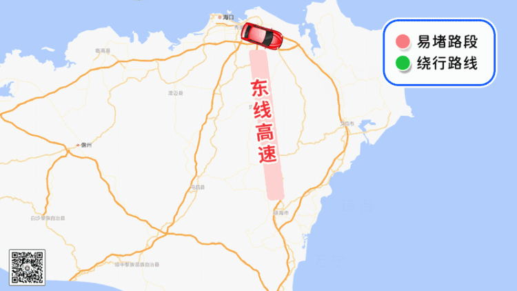 G98环岛高速东线海口至定安路段(定安往海口方向)、G98环岛高速西线大丰路段(澄迈往海口方向)、G9812海文高速(文昌往海口出口处)至S111海文联络线路段将处于假期返程交通量高锋时段。