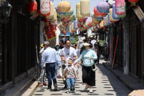 5月1日上午10点,在枫泾古镇景区检票口,等候入园的游客早已排起了队伍。“我们昨天在枫泾住了一晚,今天上午就选择来景点逛逛,主要是带着孩子来看看古镇,感受一下江南文化。”来自安徽的游客朱先生说。