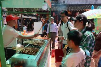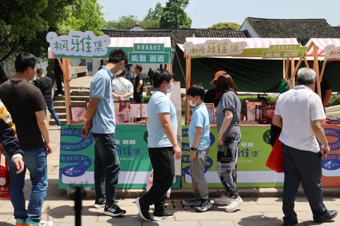 “一二三,节日快乐!”来自市区的蔡先生和家人正在长三角老品牌文化街区合影留念。“五一”小长假期间,枫泾古镇景区在南大街、三桥广场开启了“枫雅集市”,活动紧紧围绕非遗、老字号、风味美食等内容开展。现场,一字排开的精美摊位吸引了众多市民游客,大家带着家人、朋友前来拍照打卡游玩,寻找不一样的“集市”趣味!