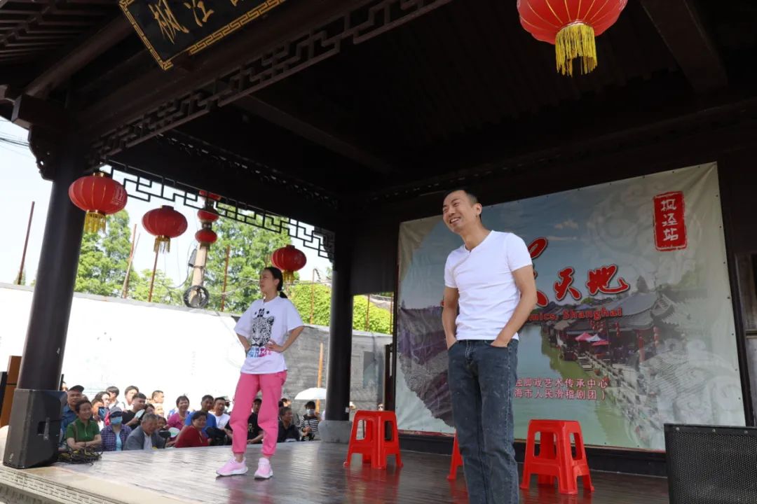 下午1:30,“上海笑天地”滑稽戏演出准点在枫泾古戏台开演,沪上知名滑稽笑星轮番登台献艺,广大市民游客笑得合不拢嘴。陈靓、潘前卫的《点赞上海》,薛文彬、单斌、韩燕的《家和万事兴》等表演引发观众的阵阵掌声。