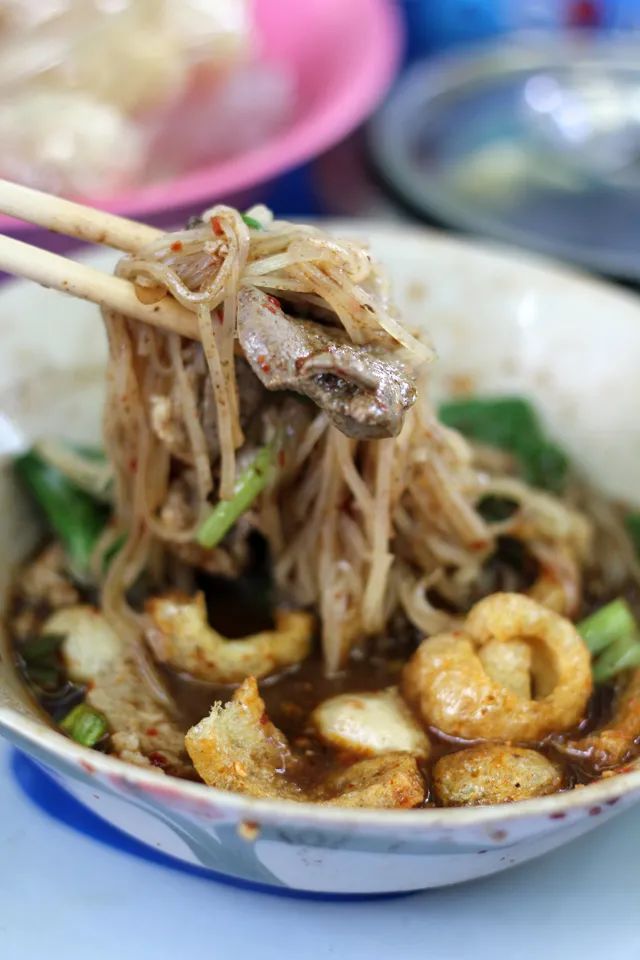 船面的汤汁是黑色 | eatingthaifood.com船面的分量很小,两三口就吃完了,想要吃饱可能得一次点上四五碗,好奇心旺盛的吃客们正好可以每种味道都尝尝。