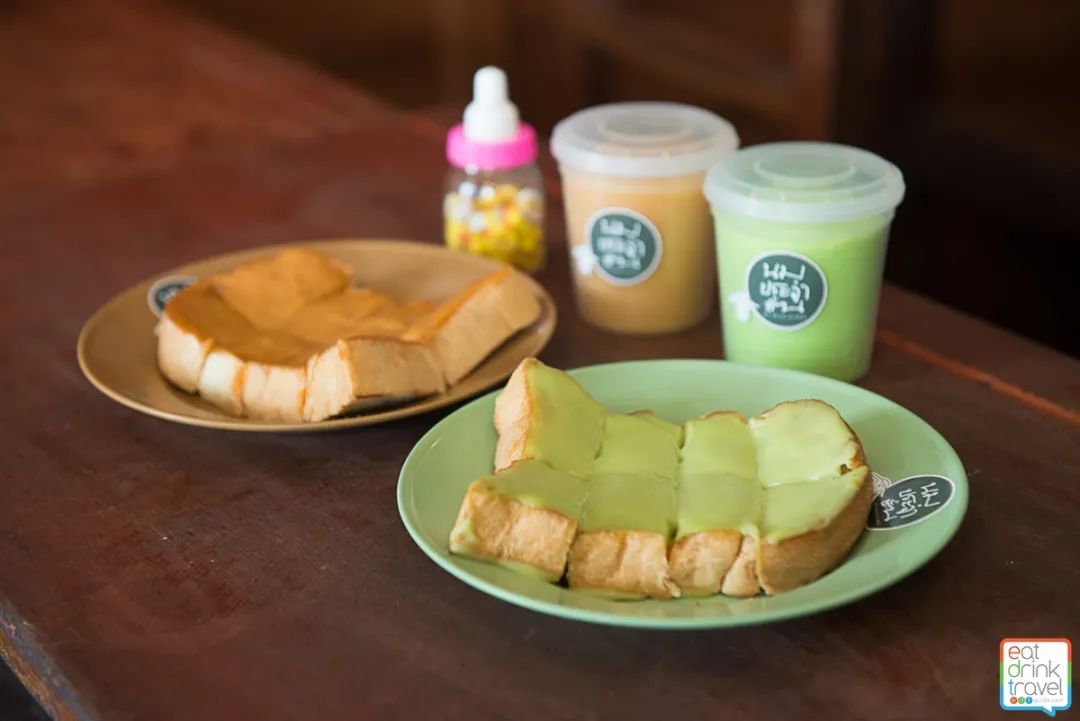 在泰国很少见到类似原麦山丘、好利来这样的大连锁面包店,但香兰酱吐司却随处可见,尤其在很多奶茶店都会搭配奶茶一起售卖。