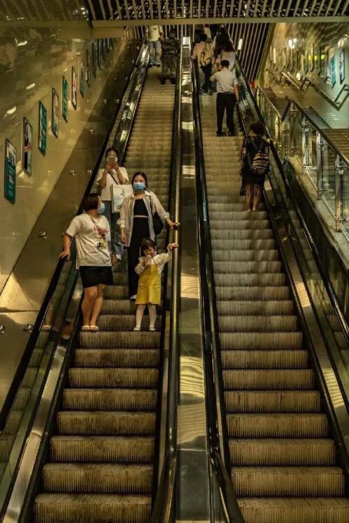 通往5号出口需要上一条长长的扶梯乘着扶梯仿佛越过一座小山