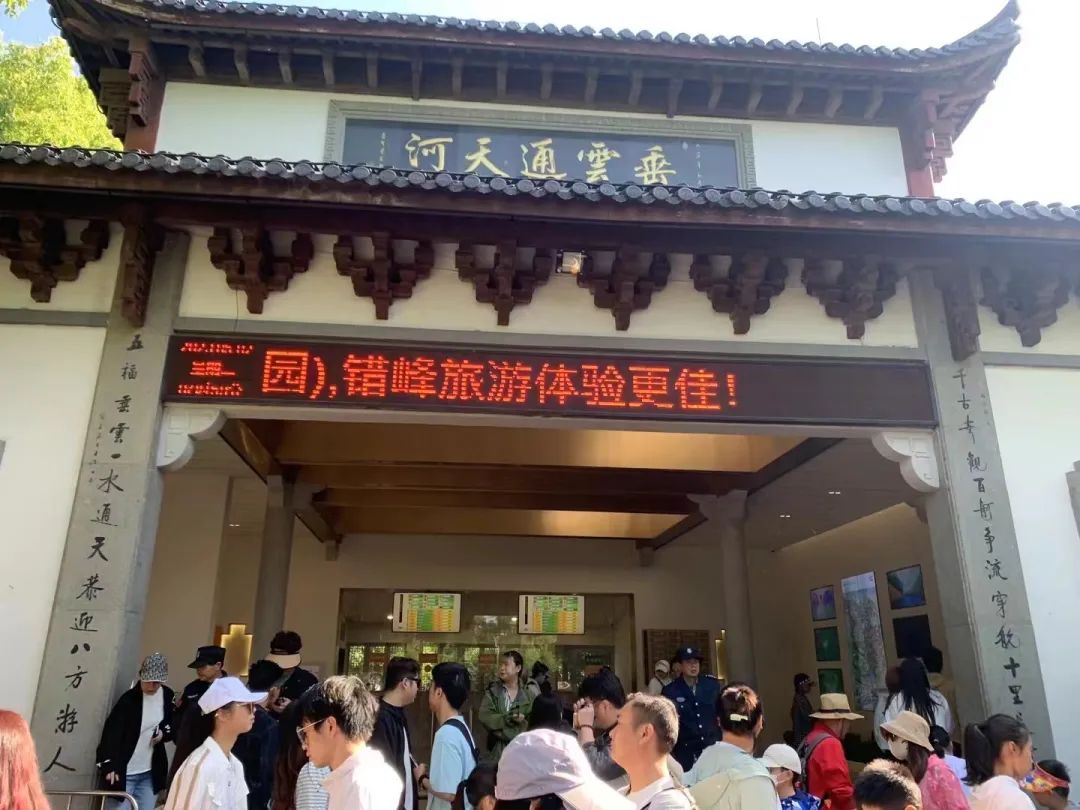 五一期间,小张所住快捷酒店的价格比平时翻了一番多,高级大床房的价格逼近小两千。但好在位置不错,出行方便。他们早上7点不到出门赶去当地一个依山而建的乐园,还没开园,门口就排起了一眼望不到头的队伍。门口电子屏上滚动着“错峰出行”的提醒,前方是确确实实错峰而来、但还是前胸贴后背的人流。