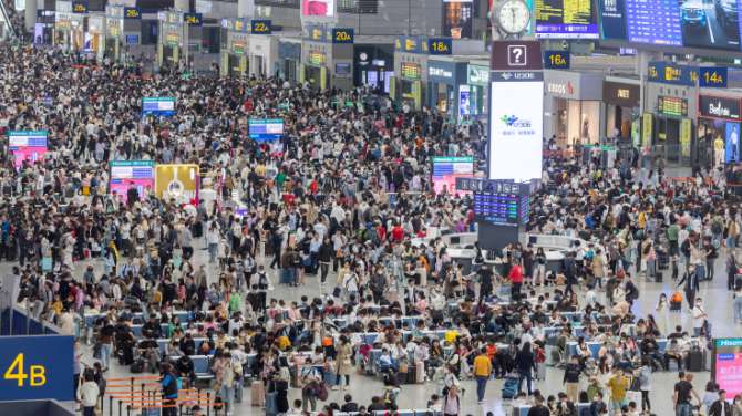 5月3日,上海,虹桥火车站迎来返程高峰。新华社 图